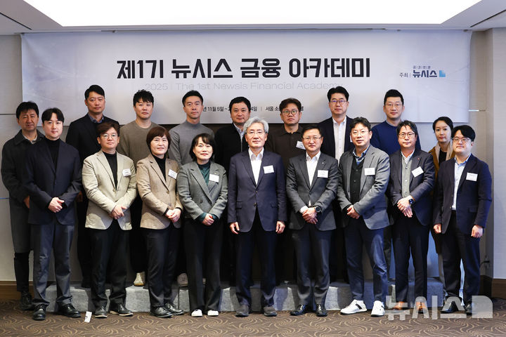 [서울=뉴시스] 최진석 기자 = 고승범 전 금융위원회 위원장과 수강생들이 17일 서울 중구 롯데호텔에서 열린 '제1기 뉴시스 금융아카데미' 7주차에서 기념촬영하고 있다. 2025.12.17. [email protected]