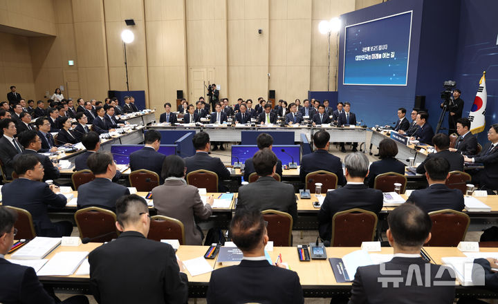 [세종=뉴시스] 최동준 기자 = 이재명 대통령이 17일 세종시 정부세종컨벤션센터에서 열린 산업통상자원부·지식재산처·중소벤처기업부 업무보고에서 발언하고 있다. (대통령실통신사진기자단) 2025.12.17. [email protected]