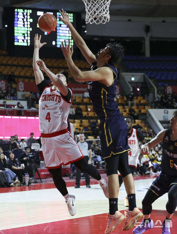 [서울=뉴시스] 김근수 기자 = 17일 오후 서울 송파구 잠실학생체육관에서 열린 2025-2026 동아시아슈퍼리그(EASL) 서울 SK나이츠와 일본 우츠노미야 브렉스의 경기, SK 김낙현이 레이업 슛을 시도하고 있다. 2025.12.17. [email protected]