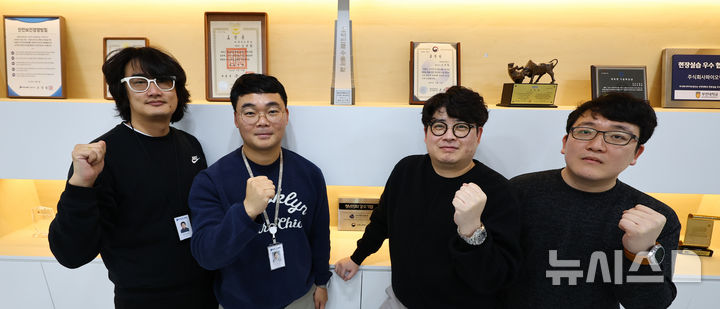 [서울=뉴시스] 박주성 기자 = 이영학 파이오링크 사이버위협분석 팀장과 팀원들이 지난 18일 서울금천구 파이오링크 본사에서 뉴시스와 인터뷰 전 포즈를 취하고 있다. 2025.12.22. [email protected]