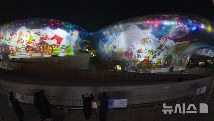 [서울=뉴시스] 김근수 기자 = 18일 저녁 서울 중구 동대문디자인플라자(DDP) 외벽에 '서울라이트 DDP 2025 겨울'을 맞아 미디어아트 '서울풀 윈터' 작품이 나오고 있다. 2025.12.18. [email protected]