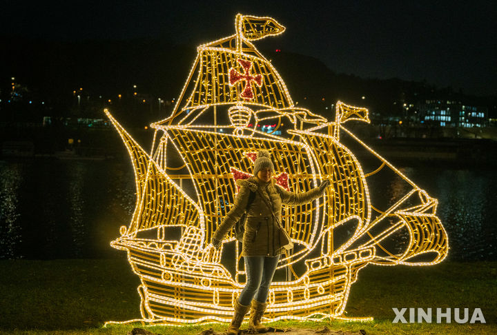 [프라하=신화/뉴시스] 19일(현지 시간) 체코 프라하의 블타바강변을 밝히는 유럽 테마의 ‘스토리 오브 라이트’ 테마파크에서 한 여성이 사진을 찍고 있다. 이 조명 공원은 건축과 빛을 결합한 연출로 관람객들에게 몰입형 체험을 제공한다. 2025.12.20.