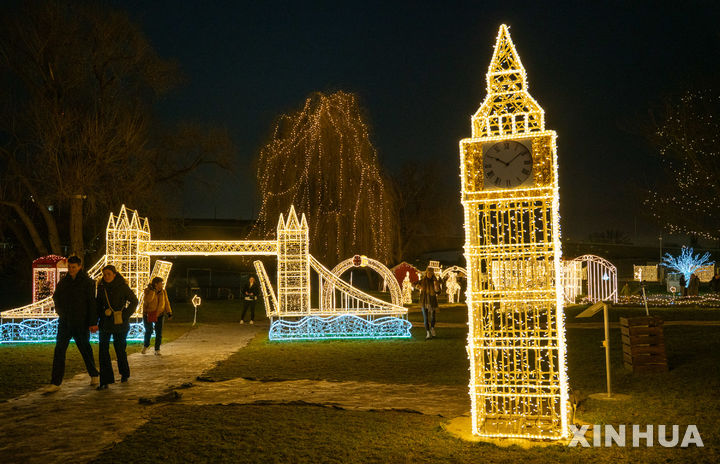 [프라하=신화/뉴시스] 19일(현지 시간) 체코 프라하의 블타바강변을 밝히는 유럽 테마의 ‘스토리 오브 라이트’ 테마파크에서 시민들이 화려한 조형물들을 둘러보고 있다. 이 조명 공원은 건축과 빛을 결합한 연출로 관람객들에게 몰입형 체험을 제공한다. 2025.12.20.