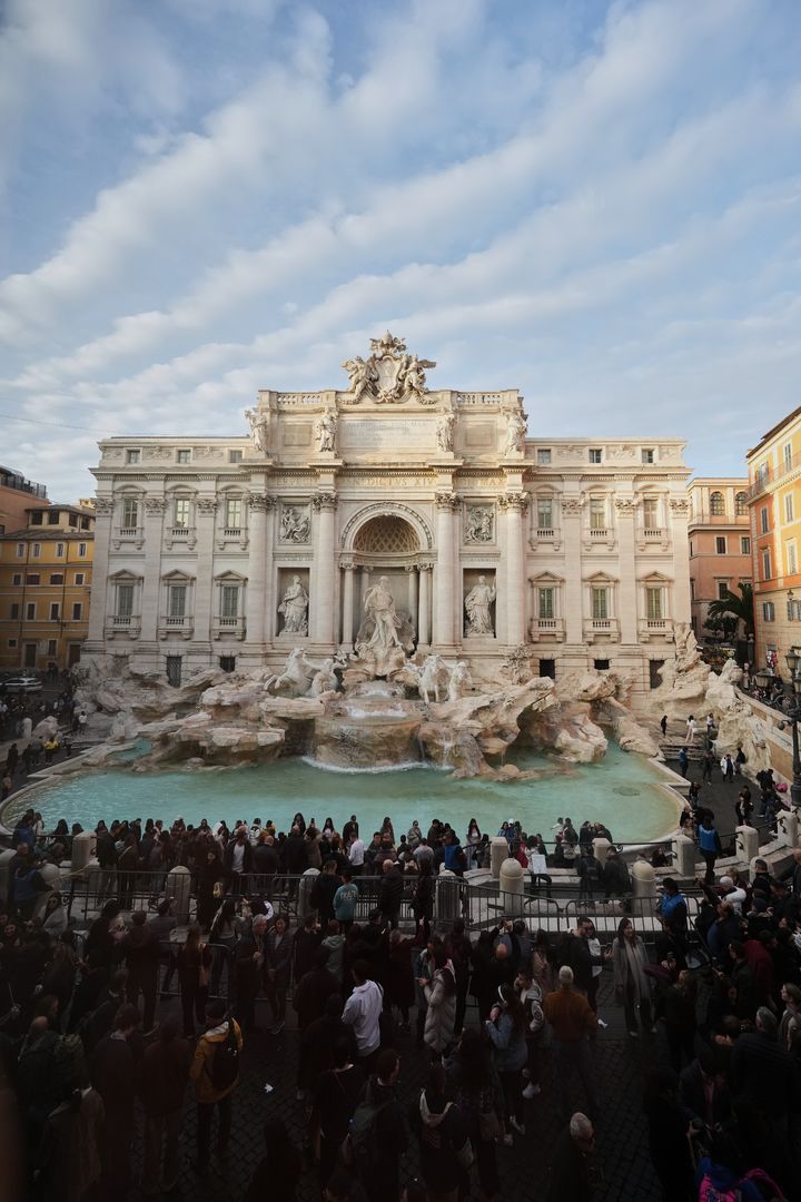[로마=AP/뉴시스] 19일(현지 시간) 이탈리아 로마에서 관광객들이 트레비 분수를 감상하고 있다. 로마시 당국은 내년 2월 1일부터 관광객들이 트레비 분수를 가까이서 보려면 2유로(약 3500원)의 이용료를 내야 한다고 밝혔다. 이 이용료는 관광객에게만 부과된다. 2025.12.20.