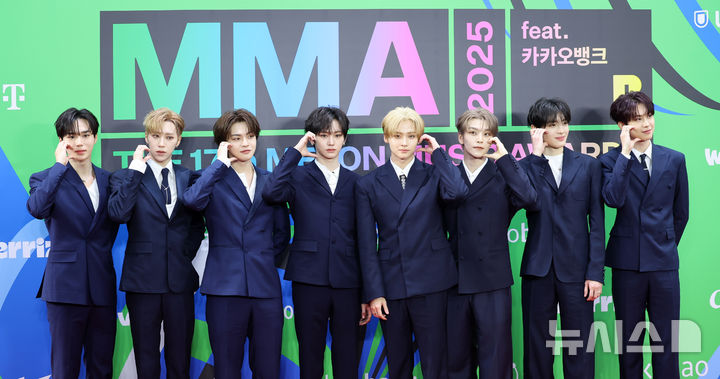 [서울=뉴시스] 김혜진 기자 = 그룹 알파드라이브원이 20일 오후 서울 구로구 고척스카이돔에서 열린 2025 멜론뮤직어워드(MMA2025) 레드카펫을 밟고 있다.