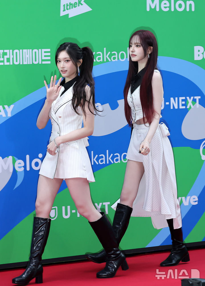 [서울=뉴시스] 김혜진 기자 = 그룹 아이브 이서(왼쪽), 리즈가 20일 오후 서울 구로구 고척스카이돔에서 열린 2025 멜론뮤직어워드(MMA2025) 레드카펫을 밟고 있다.