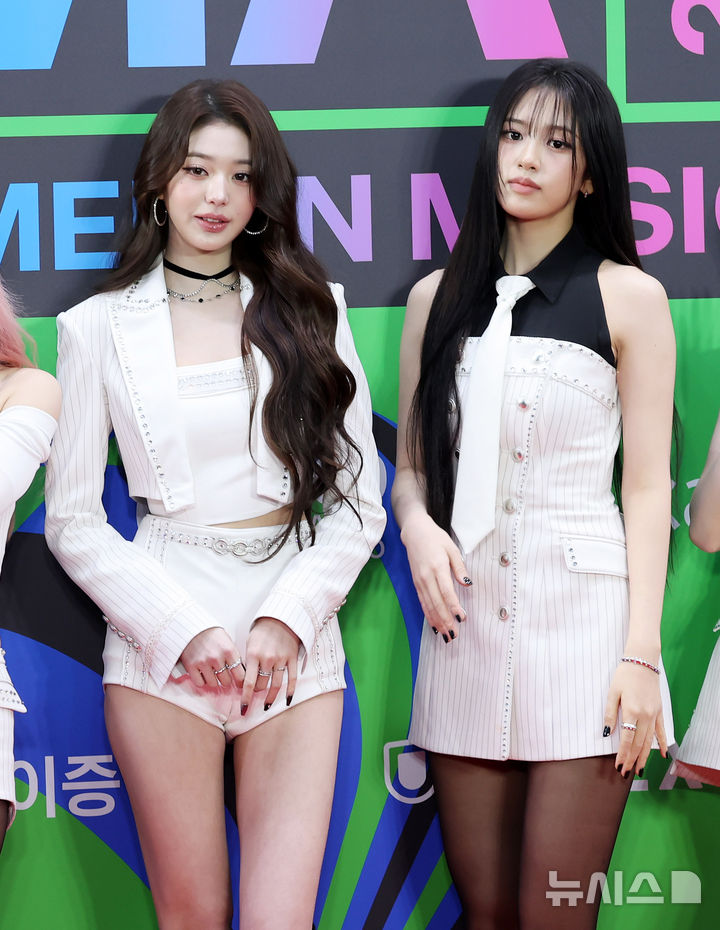 [서울=뉴시스] 김혜진 기자 = 그룹 아이브 원영(왼쪽), 유진이 20일 오후 서울 구로구 고척스카이돔에서 열린 2025 멜론뮤직어워드(MMA2025) 레드카펫을 밟고 있다.
