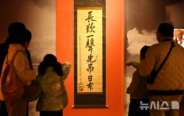 안중근 유묵 '장탄일성 선조일본' 관람하는 시민들