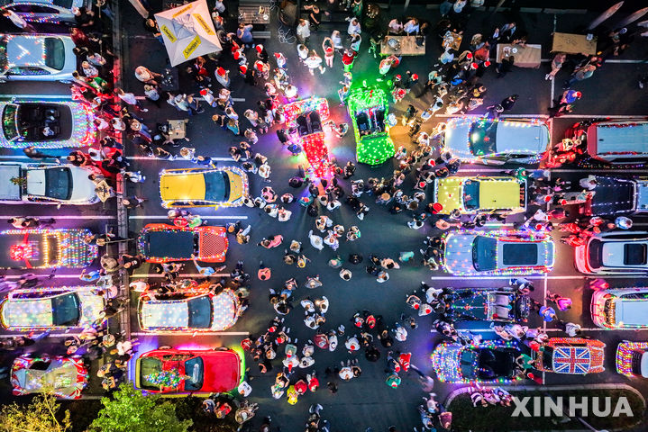 [요하네스버그=신화/뉴시스] 21일(현지 시간) 남아프리카공화국 요하네스버그의 한 주차장 행사장에 크리스마스 장식으로 꾸민 차량과 사람들이 모여 있다. 성탄절을 앞둔 요하네스버그 전역은 축제 분위기로 가득 차 있다. 2025.12.22.