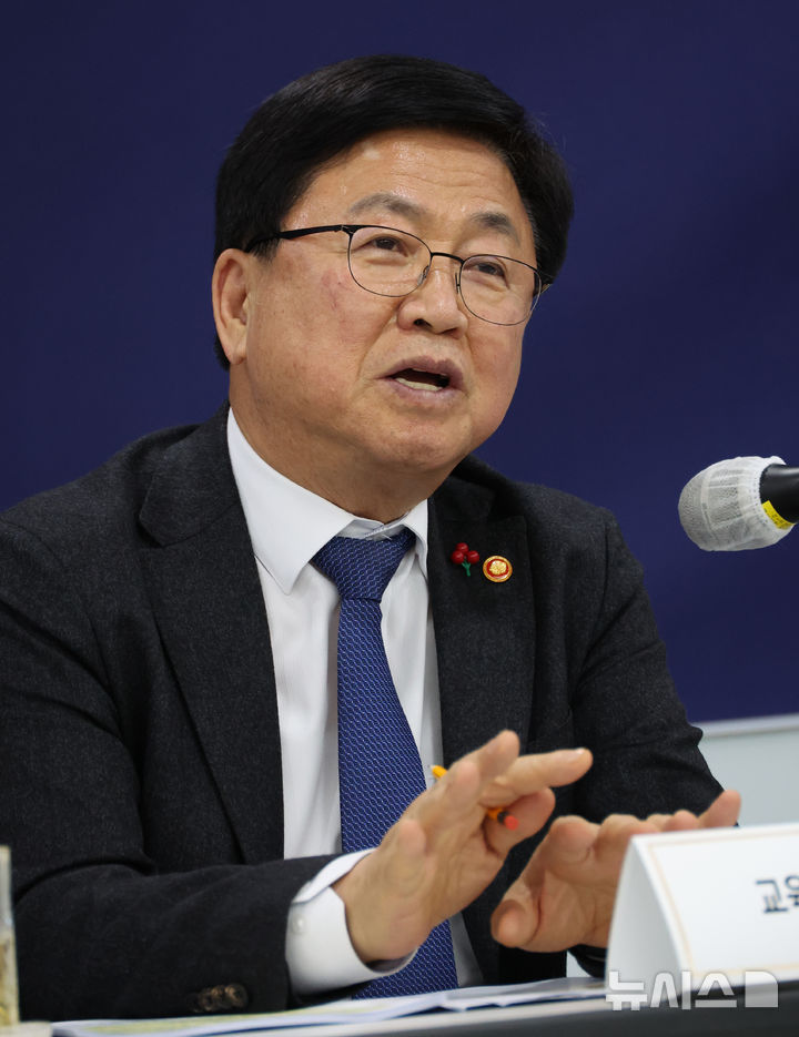 [세종=뉴시스] 강종민 기자 = 최교진 교육부 장관이 지난 22일 세종시 정부세종청사에서 열린 취임 100일 출입기자단 간담회에서 질문에 답하고 있다. 2025.12.23. [email protected]