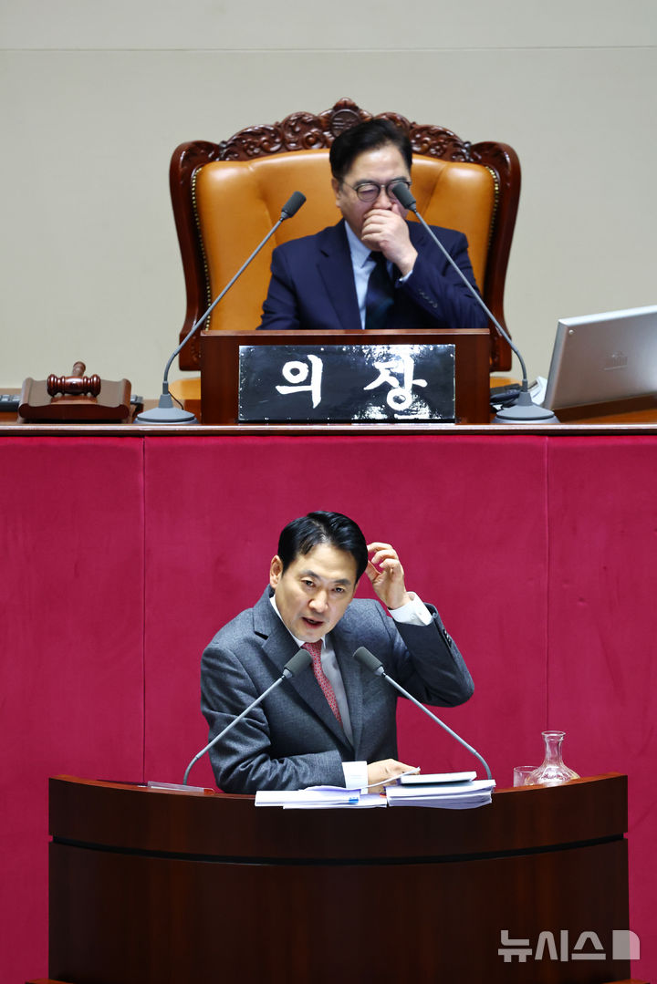 [서울=뉴시스] 김명년 기자 = 장동혁 국민의힘 대표가 23일 오전 서울 여의도 국회에서 열린 제430회국회(임시회) 제2차 본회의에서 '내란전담재판부설치 관련 법안'에 대한 무제한토론(필리버스터)을 하고 있다. 2025.12.23. [email protected]