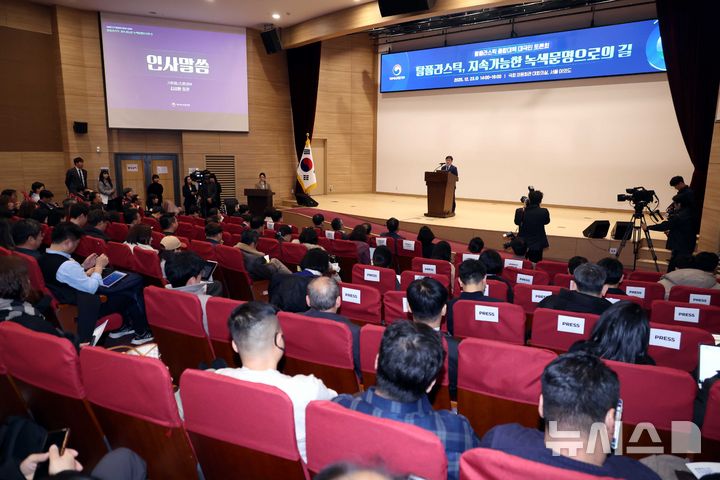 [서울=뉴시스] 조성봉 기자 = 김성환 기후에너지환경부장관이 23일 서울 여의도 국회 의원회관에서 열린 ‘탈플라스틱 종합대책 대국민 토론회’에서 인사말을 하고 있다.2025.12.23. [email protected]