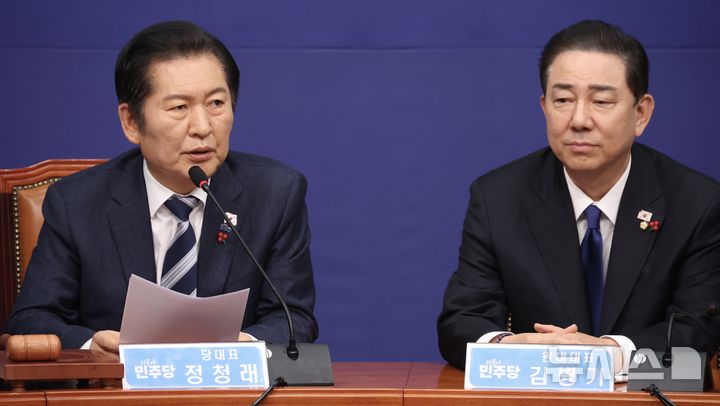 [서울=뉴시스] 조성봉 기자 = 정청래 더불어민주당 대표가 24일 오전 서울 여의도 국회에서 열린 최고위원회의에서 발언을 하고 있다. 2025.12.24. [email protected]