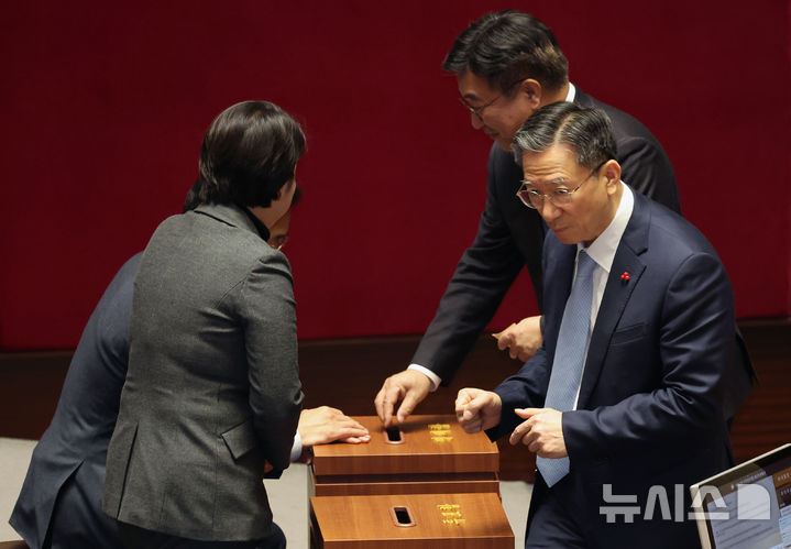[서울=뉴시스] 김금보 기자 = 정성호 법무부 장관이 24일 서울 여의도 국회에서 열린 제430회국회(임시회) 제2차 본회의에서 정보통신망 이용촉진 및 정보보호 등에 관한 법률 일부개정법률안(대안)에 대한 무제한토론 종결동의의 건에 대해 투표를 하고 있다. 2025.12.24. [email protected]