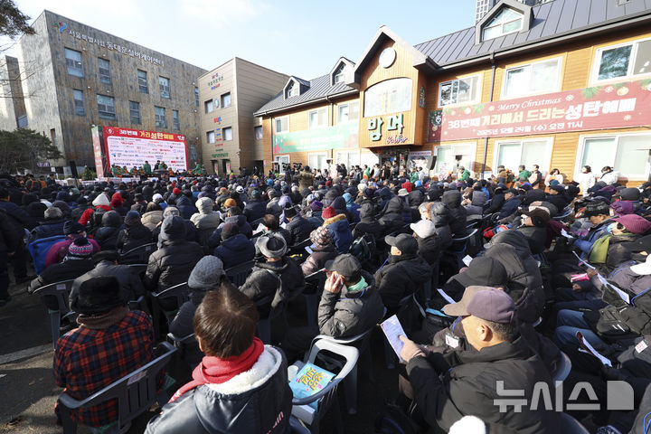 다일공동체 밥퍼나눔운동본부는 이날 성탄예배를 마치고 참석자들에게 방한복과 도시락을 선물로 나눠줬다. 2025.12.24. [email protected]