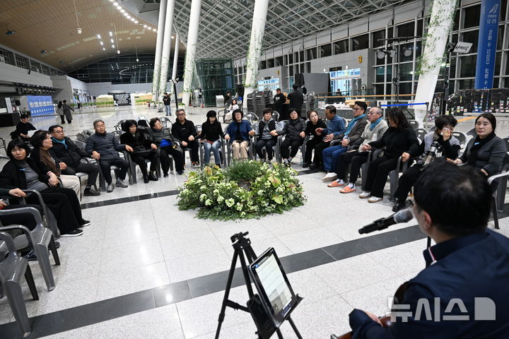 [무안=뉴시스] 이현행 기자 = 12·29 무안공항 제주항공 여객기 참사 1주기를 닷새 앞둔 24일 오후 전남 무안군 무안국제공항에서 열린 여객기 참사 1주기 '토닥허그 나눔의 밤' 추모 행사가 열리고 있다. 2025.12.24. [email protected]