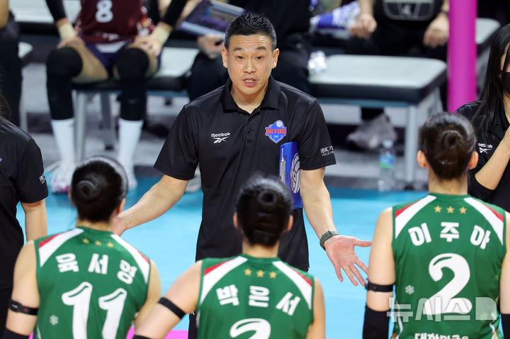 [인천=뉴시스] 홍효식 기자 = 24일 인천 부평구 인천삼산월드체육관에서 열린 2025-2026 V-리그 여자부 3라운드 흥국생명과 IBK기업은행의 경기, 여오현 IBK기업은행 감독대행이 선수들에게 지시하고 있다. 2025.12.24. [email protected]