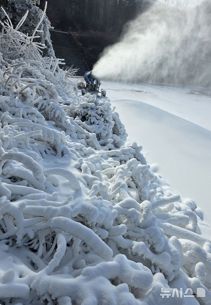 [태백=뉴시스] 홍춘봉 기자 = '제33회 태백산눈축제'를 앞두고 성탄절인 25일 태백산국립공원 당골광장에서 눈을 만드는 제설작업이 본격 시작되고 있다.