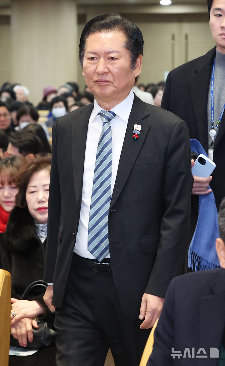 [용인=뉴시스] 권창회 기자 = 정청래 더불어민주당 대표가 25일 오전 경기 용인시 세에덴교회에서 열린 성탄예배에 참석하고 있다. (공동취재) 2025.12.25. [email protected]