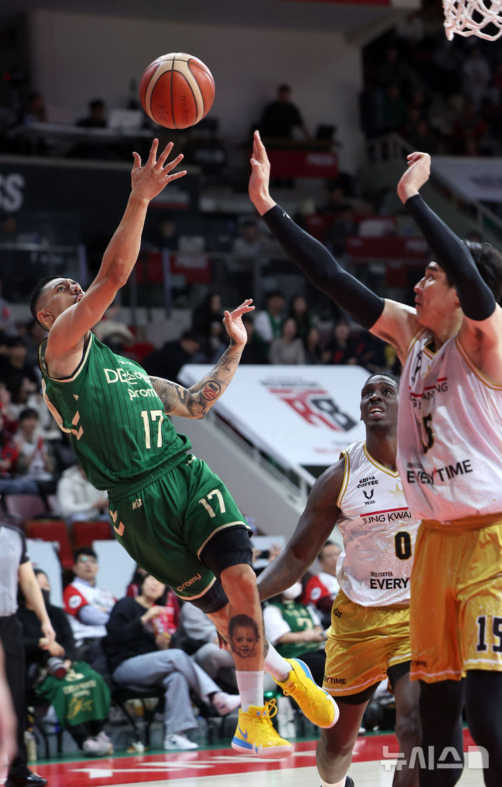 [안양=뉴시스] 김선웅 기자 = 25일 경기 안양시 정관장 아레나에서 열린 2025-2026 프로농구 안양 정관장 vs 원주 DB의 경기, 원주 알바노가 레이업 슛을 하고 있다. 2025.12.25. [email protected]