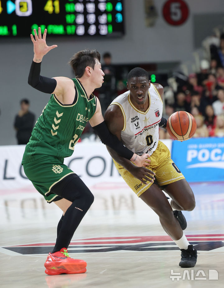 [안양=뉴시스] 김선웅 기자 = 25일 경기 안양시 정관장 아레나에서 열린 2025-2026 프로농구 안양 정관장 vs 원주 DB의 경기, 안양 오브라이언트가 돌파를 시도하고 있다. 2025.12.25. [email protected]