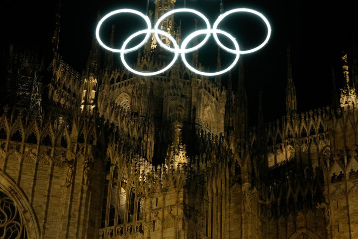 [밀라노=AP/뉴시스] 이탈리아에서 열리는 '2026 밀라노·코르티나담페초 동계올림픽'을 앞두고 27일(현지 시간) 밀라노 두오모 고딕 대성당 주변에 네온 올림픽 오륜이 설치돼 있다. 제25회 동계올림픽은 내년 2월 6일부터 22일까지 이탈리아 밀라노와 코르티나담페초에서 열린다. 2025.12.28.