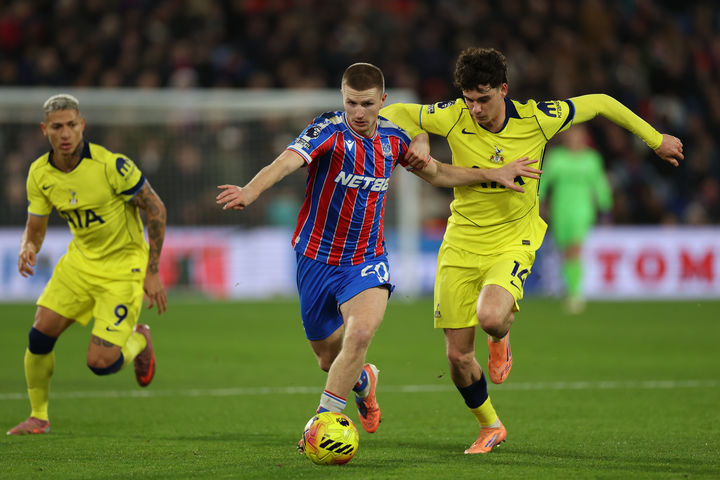 [런던=AP/뉴시스] 토트넘 홋스퍼의 아치 그레이(오른쪽)가 28일(현지 시간) 영국 런던의 셀허스트 파크에서 열린 2025-26 프리미어리그 18라운드 크리스털 팰리스와 경기 중 공을 다투고 있다. 지난해 여름 이적한 19세 그레이는 전반 42분, 공식전 60경기 만에 데뷔골을 터트리며 팀의 1-0 승리를 이끌었다. 2025.12.29.
