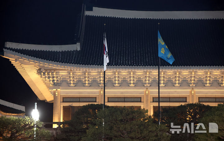 [서울=뉴시스] 고범준 기자 = 29일 청와대 본관 앞에 봉황기가 게양되고 있다.