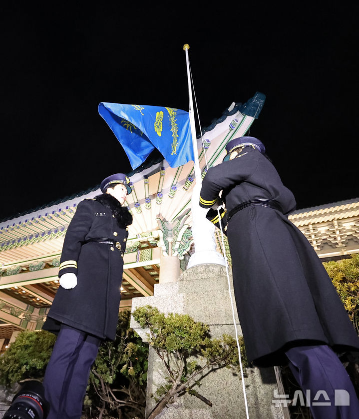 [서울=뉴시스] 고범준 기자 = 29일 청와대 본관 앞에 봉황기가 게양되고 있다.