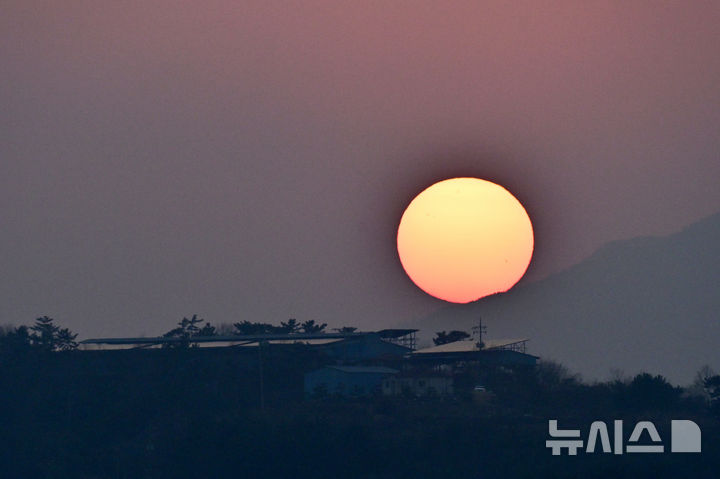 [사천=뉴시스] 차용현 기자 = 29일 오후 경남 사천시 해안산업로에서 바라보 서쪽 하늘에 붉은 태양이 지고 있다. 2025.12.29. [email protected]