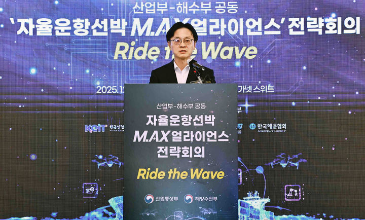 [서울=뉴시스] 이영환 기자 = 김정관 산업통상부 장관이 29일 오후 서울 중구 롯데호텔에서 열린 자율운항선박 M.AX 얼라이언스 전략회의에 참석해 인사말을 하고 있다. (사진=산업통상부 제공) 2025.12.29 [email protected] *재판매 및 DB 금지