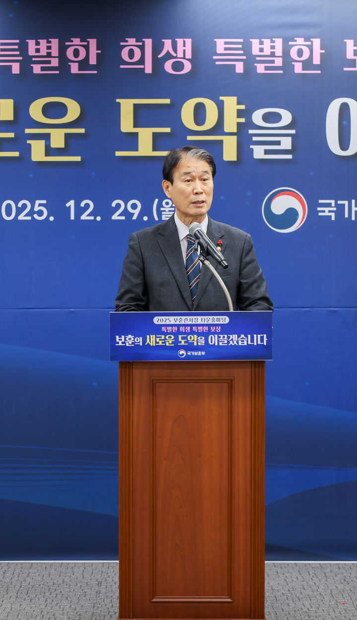 [서울=뉴시스] 이영환 기자 = 권오을 국가보훈부 장관이 29일 오후 세종시 정부세종청사 국가보훈부에서 열린 2025년 하반기 전국 보훈관서장 회의에 참석해 인사말을 하고 있다. (사진=국가보훈부 제공) 2025.12.29. [email protected] *재판매 및 DB 금지