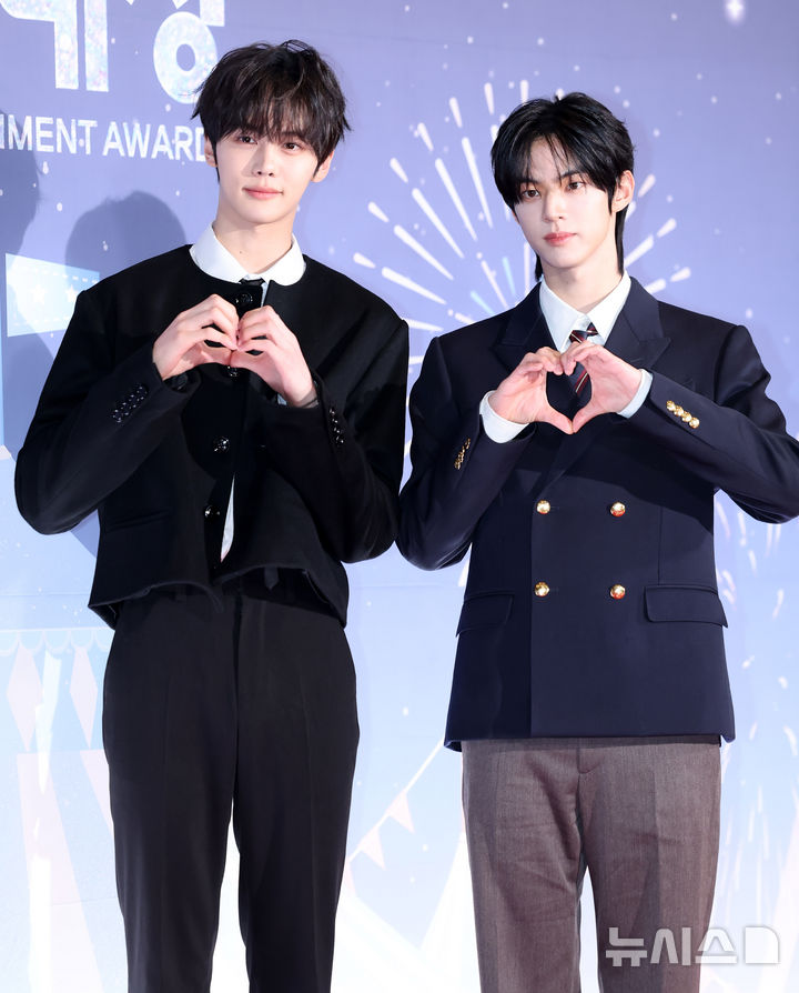 [서울=뉴시스] 김혜진 기자 = 그룹 제로베이스원 규빈(왼쪽), 투어스 도훈이 29일 오후 서울 마포구 MBC 사옥에서 열린 2025 MBC 방송연예대상에서 포즈를 취하고 있다. 2025.12.29. [email protected]