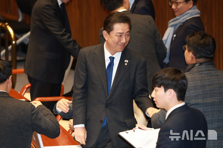 [서울=뉴시스] 고승민 기자 = 김병기 더불어민주당 전 원내대표가 30일 서울 여의도 국회에서 열린 본회의에서 의원들과 인사를 나누고 있다. 2025.12.30. [email protected]