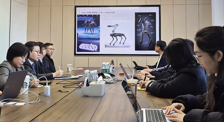 [서울=뉴시스] 김진아 기자 = 여한구 산업통상부 통상교섭본부장이 30일(현지 시간) 중국 베이징시 하이뎬구에 위치한 혁신 로봇 기업인 갤봇(Galbot)을 방문, 현장을 둘러본 뒤 한국 기업과의 기술협력 가능 분야 등 잠재 협력 방향에 대한 의견을 교환하고 있다. (사진=산업통상부 제공) 2025.12.30. [email protected] *재판매 및 DB 금지