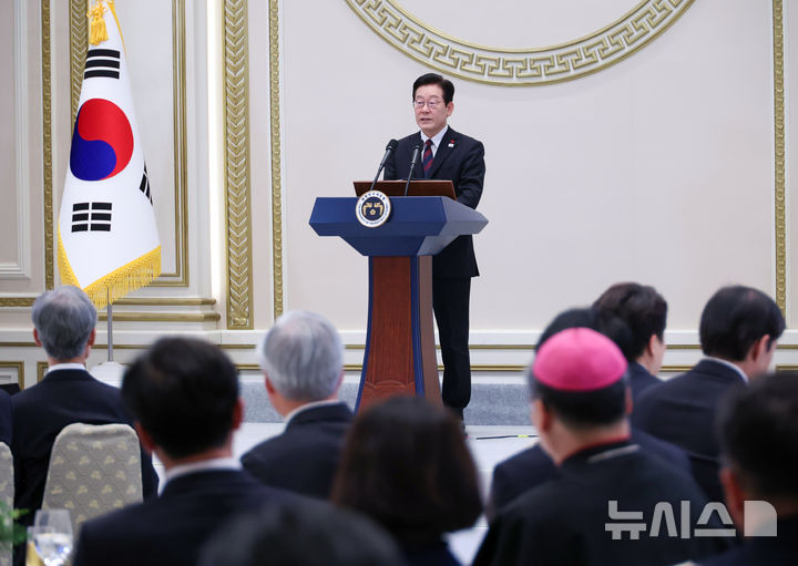 [서울=뉴시스] 고범준 기자 = 이재명 대통령이 2일 청와대 영빈관에서 열린 2026년 신년인사회에서 신년사를 하고 있다. (청와대통신사진기자단) 2026.01.02. [email protected]