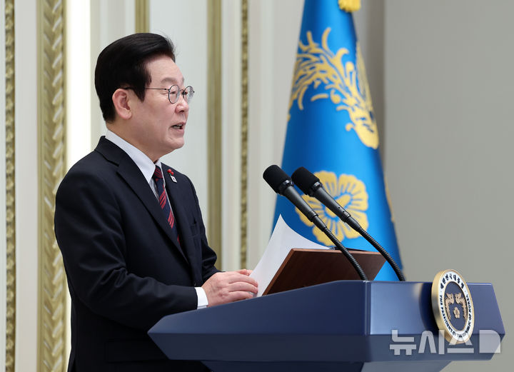 [서울=뉴시스] 고범준 기자 = 이재명 대통령이 2일 청와대 영빈관에서 열린 2026년 신년인사회에서 신년사를 하고 있다. (청와대통신사진기자단) 2026.01.02. [email protected]