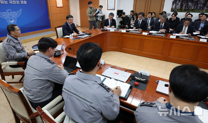 [서울=뉴시스] 이영환 기자 = 윤호중 행정안전부 장관이 2일 오후 서울 서대문구 경찰청에서 열린 전국 경찰 지휘부 화상회의에 참석해 발언을 하고 있다. 2026.01.02. [email protected]