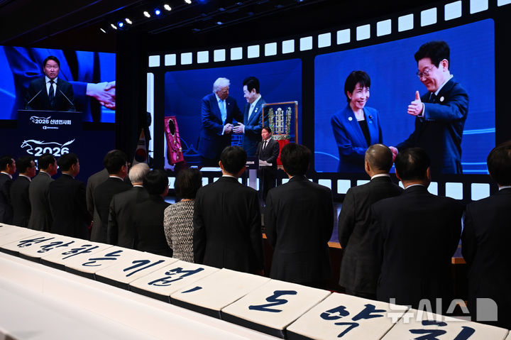 [서울=뉴시스] 사진공동취재단 = 최태원 대한상공회의소 회장이 2일 오후 서울 중구 대한상공회의소에서 열린 2026 경제계 신년인사회에서 인사말을 하고 있다. 2026.01.02. [email protected]