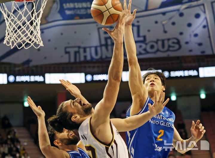 [서울=뉴시스] 조성우 기자 = 2일 오후 서울 송파구 잠실실내체육관에서 열린 2025~2026 LG전자 프로농구 정규리그 서울 삼성 썬더스와 창원 LG 세이커스의 경기, LG 아셈 마레이가 골밑슛을 시도하고 있다. 2026.01.02. [email protected]