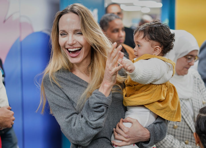 [라파=AP/뉴시스] 미국 배우 겸 영화 제작자 앤젤리나 졸리가 2일(현지 시간) 가자지구 라파 검문소의 이집트 측 엘아리시 병원에서 한 팔레스타인 소녀를 안고 있다. 유엔아동기금(UNICEF·유니세프) 친선 대사이기도 한 졸리는 이날 가자지구의 팔레스타인 부상자 상태를 확인하고 지원 물자 전달 상황을 살펴보기 위해 이곳을 방문한 것으로 알려졌다. 2026.01.03.