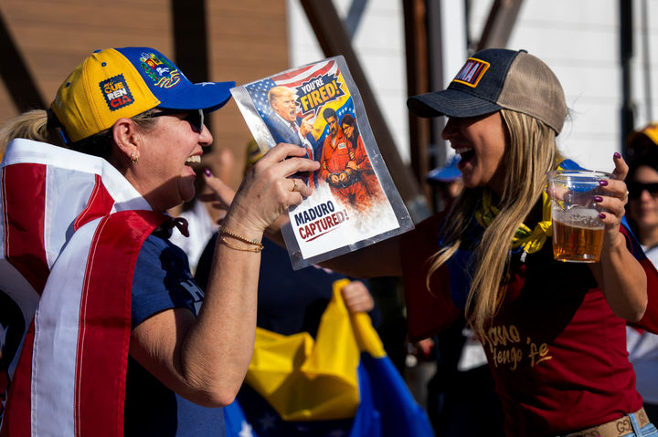 마두로 체포에 춤추며 환호하는 여성들