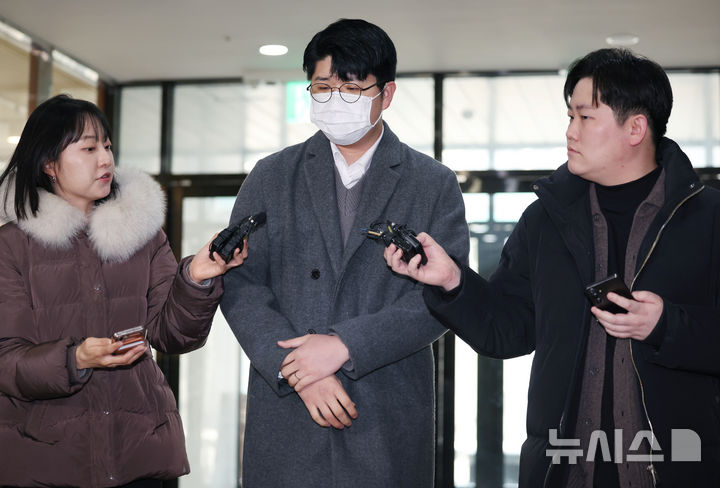 [서울=뉴시스] 김진아 기자 = '쿠팡 블랙리스트' 공익제보자 김준호 씨가 4일 서울 서초구 관봉권 띠지 폐기 의혹 및 쿠팡 퇴직금 불기소 외압 의혹 진상규명을 위한 특검 사무실에 참고인 신분으로 2차 출석하던 중 취재진 질문에 답하고 있다. 2025.01.04. [email protected]