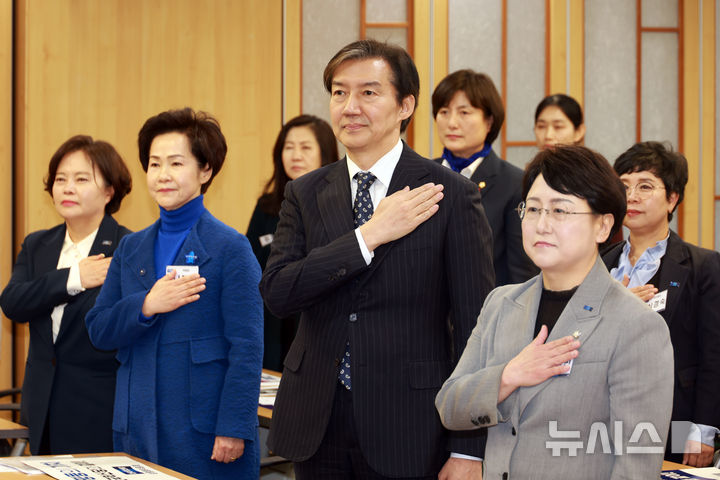 [서울=뉴시스] 고승민 기자 = 조국 조국혁신당 대표 등 참석자들이 5일 서울 여의도 국회 의원회관에서 열린 성평등위원회 발대식에서 국민의례를 하고 있다. 2026.01.05. [email protected]