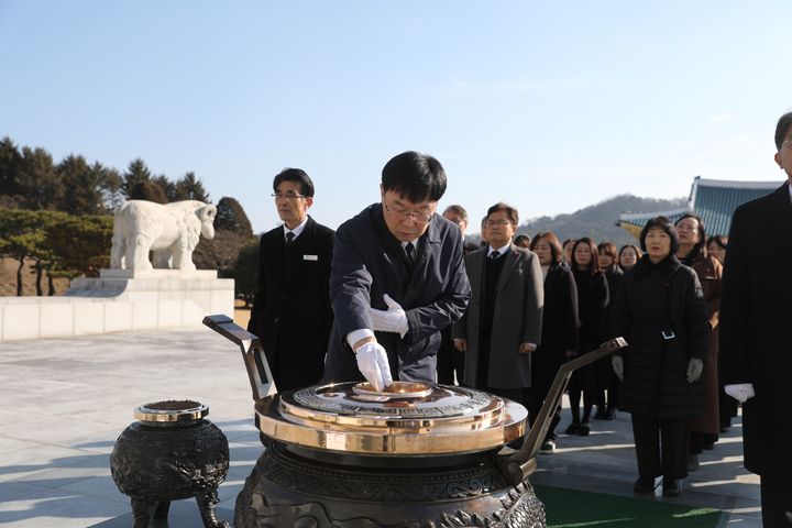 [서울=뉴시스] 안형준 국가데이터처장이 5일 대전 유성구 국립대전현충원에서 분향하고 있다. (사진=국가데이터처 제공) 2026.01.05. [email protected] *재판매 및 DB 금지