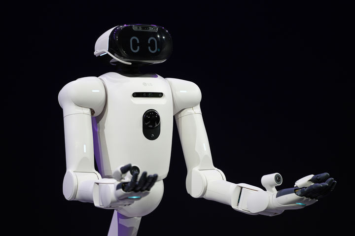 [라스베이거스=AP/뉴시스] 5일(현지 시간) 미 네바다주 라스베이거스 만달레이베이 컨벤션 센터에서 세계 최대 IT·전자 전시회 'CES 2026' 개막을 앞두고 열린 'LG 월드 프리미어'에서 LG전자 가정용 로봇 ‘클로이드(CLOiD)’가 관객들과 상호작용을 하고 있다. 2026.01.06.