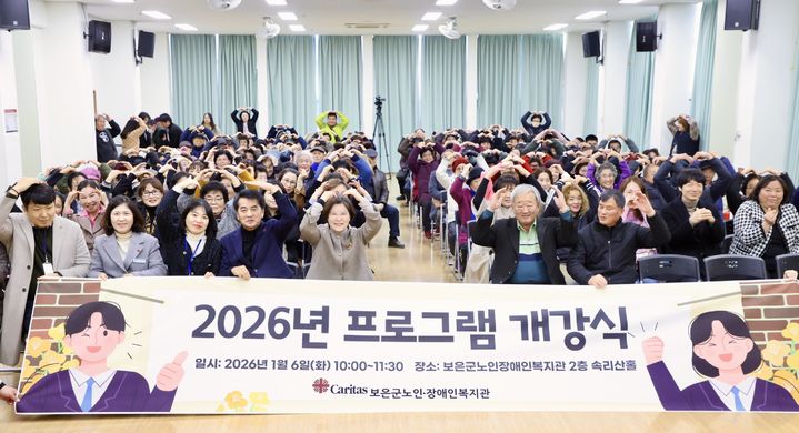 [보은=뉴시스] 6일 충북 보은군 보은읍 보은군노인장애인복지관에서 2026년 복지관 프로그램 개강식이 열리고 있다. 복지관은 올해 노인·장애인 986명을 대상으로 62개 프로그램을 운영한다. (사진=보은군 제공) 2026.01.06. [email protected]
