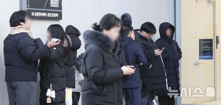 [서울=뉴시스] 김근수 기자 = 갤럭시 Z 트라이폴드 3차 판매를 시작한 6일 오전 서울 강남구 삼성전자서비스 삼성 강남센터에서 시민들이 매장으로 입장하기 위해 대기하고 있다.