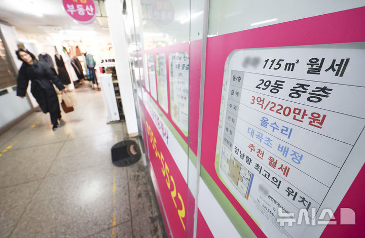 [서울=뉴시스] 김근수 기자 = 6일 서울 강남구 대치동의 한 부동산 앞에 월세 매물 안내문이 붙어 있다.