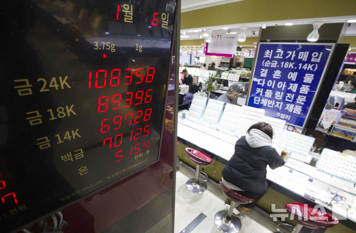 일반 금은방에서 판매되는 금 한 돈 가격은 100만 원을 넘어섰으며 전광판은 여섯 자리까지만 표기돼 십만 원 단위로 표시되고 있다. 2026.01.06. [email protected]